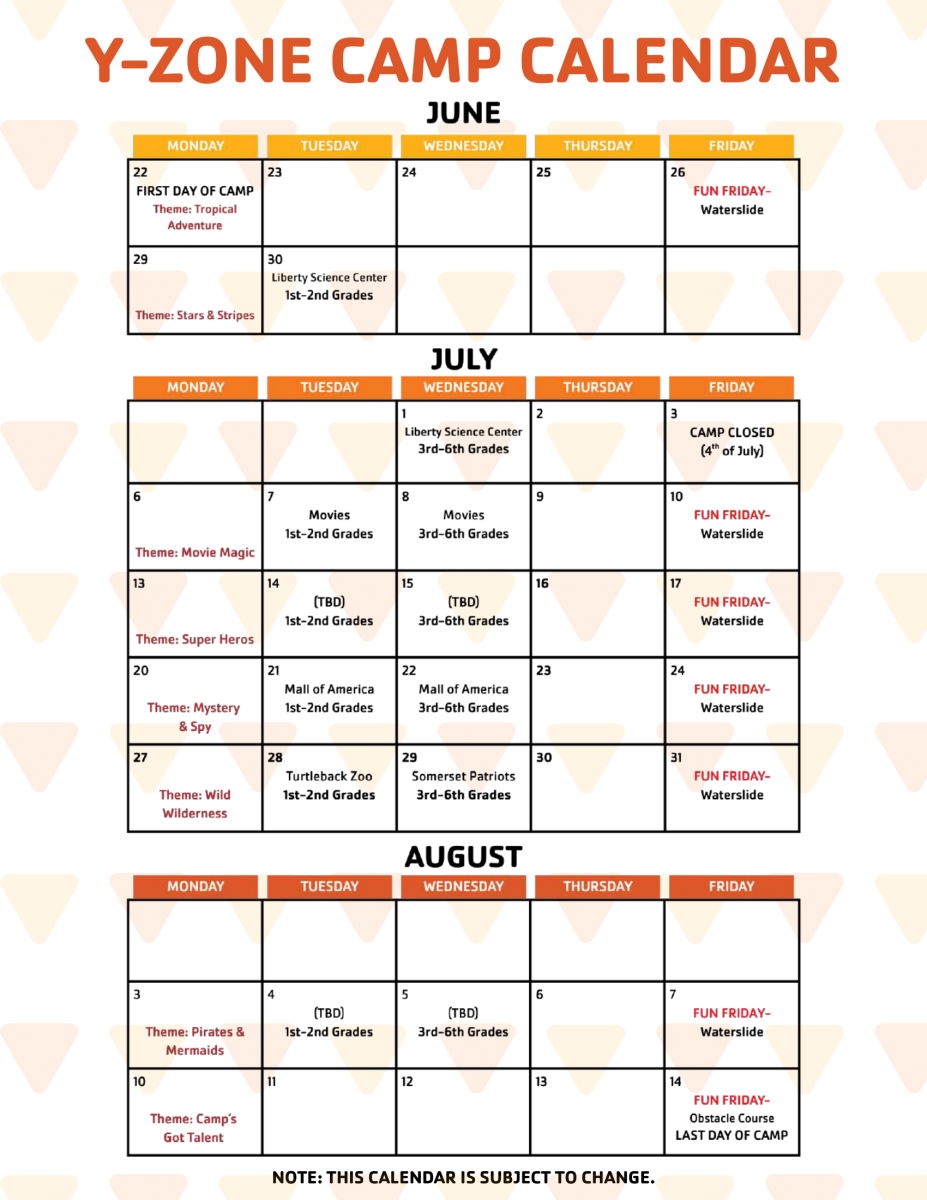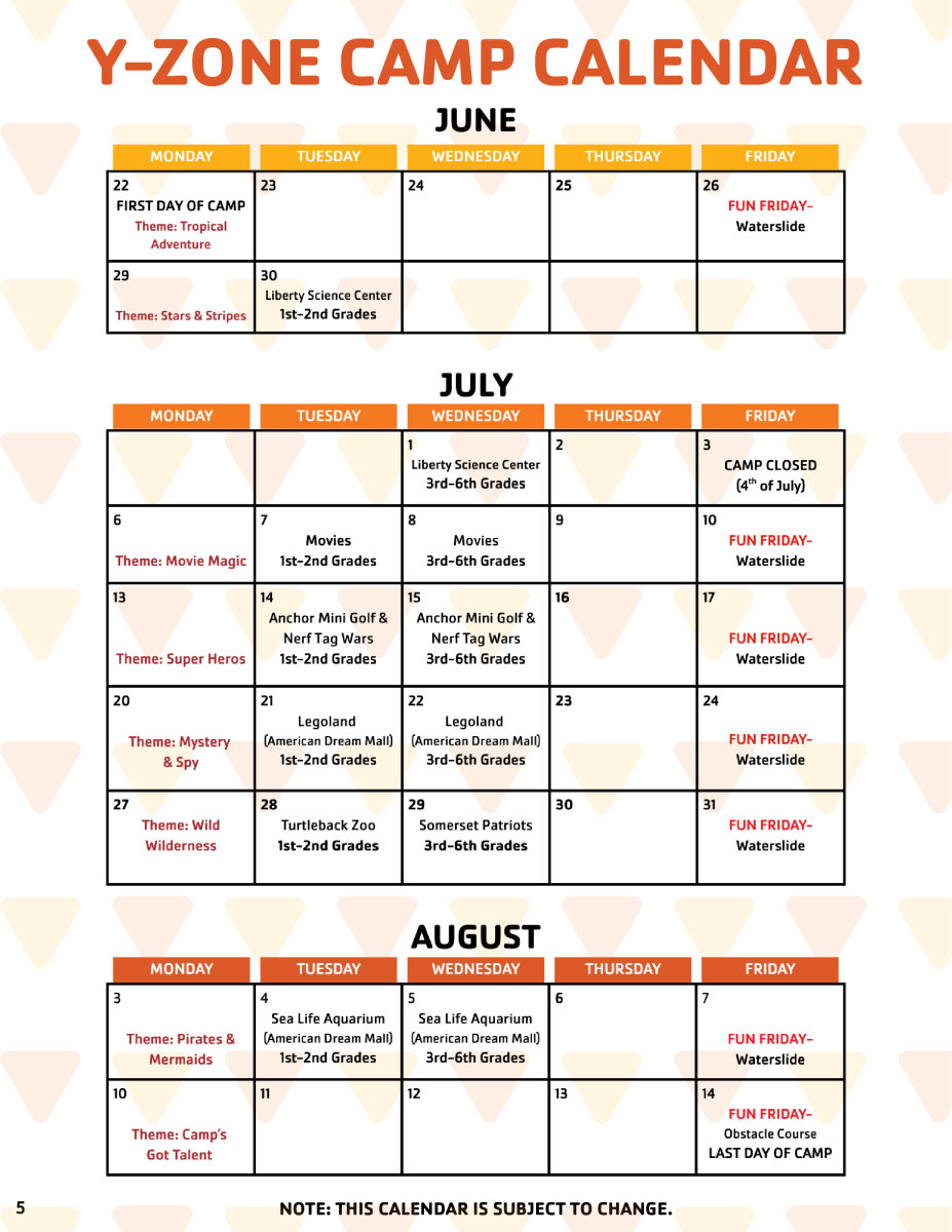 Please remember that the Y Zone Summer Camp is a strictly nut-free facility. This is not only a policy but a critical safety requirement, as several of our campers have severe allergies.